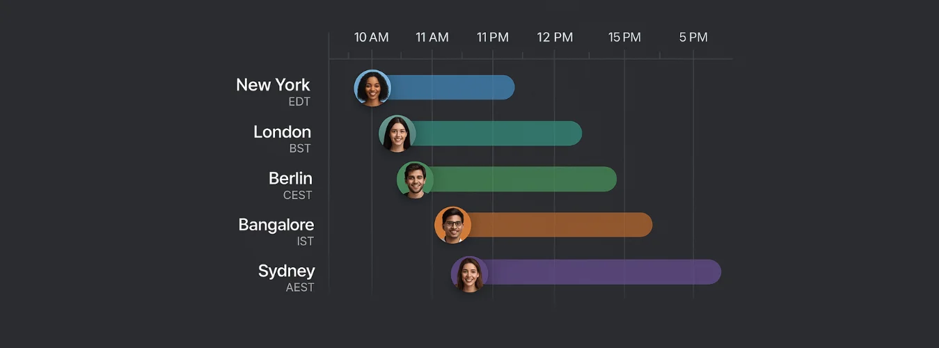 Accountability thrives on routine. Establish recurring check-ins that rotate to share the time zone burden fairly. Maybe your Monday standup is at 8 AM EST (manageable for Europe and the Americas), while your Thursday sync is at 5 PM EST (prime time for Asia-Pacific). No one team member should consistently take the hit.